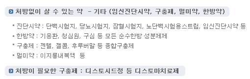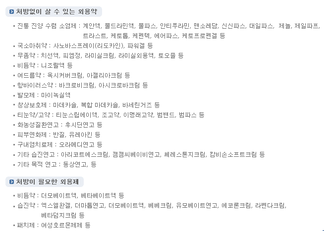 처방전 없이 살 수 있는 의약품과 처방전이 필요한 의약품은 아래와 같습니다.